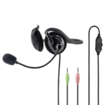 - PC office headset with neck band, flexible microphone arm and 2 x 3.5 mm jack connection